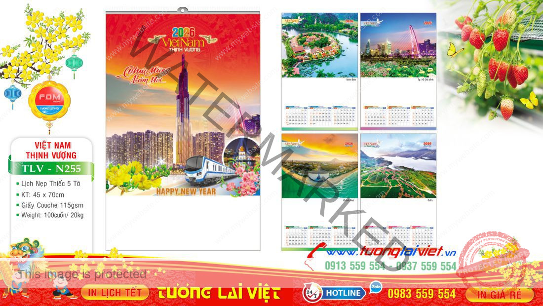 ➤ Lịch 5 tờ nẹp thiếc bao gồm: