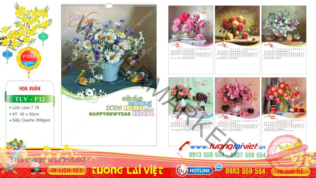 Lịch treo tường 7 tờ Bốn mùa hoa được nhiều đơn vị chọn làm quà tặng cho khách hàng, đối tác và người thân nhân dịp năm mới. In quảng cáo lịch tờ treo tường như: In Logo, Tên công ty, địa chỉ, số điện thoại, email để quảng bá thương hiệu doanh nghiệp là phương pháp quảng cáo hiệu quả nhất với chi phí tiết kiệm trong thời điểm hiện tại.