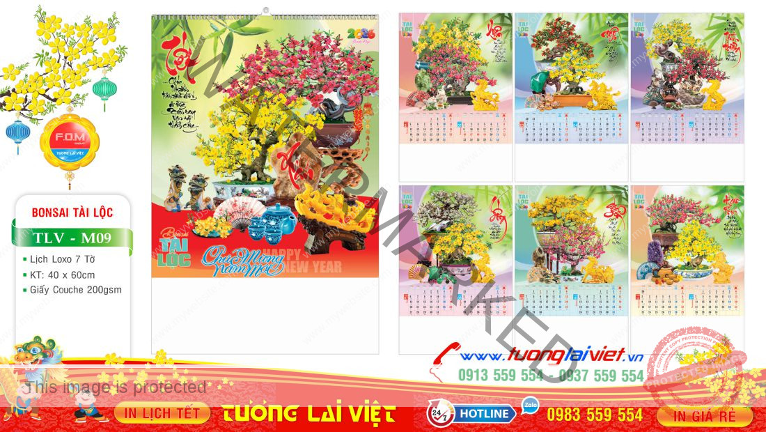 Lịch treo tường 7 tờ Bonsai tài lộc