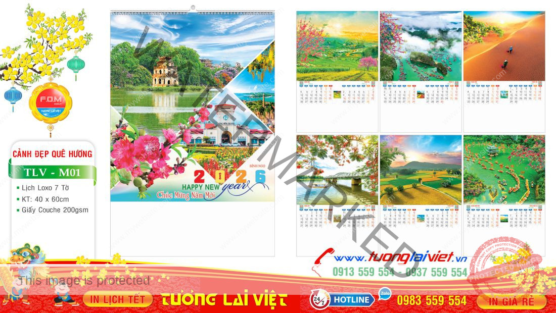 Lịch treo tường 7 tờ Cảnh đẹp Việt Nam được nhiều đơn vị chọn làm quà tặng cho khách hàng, đối tác và người thân nhân dịp năm mới. In quảng cáo lịch tờ treo tường như: In Logo, Tên công ty, địa chỉ, số điện thoại, email để quảng bá thương hiệu doanh nghiệp là phương pháp quảng cáo hiệu quả nhất với chi phí tiết kiệm trong thời điểm hiện tại.