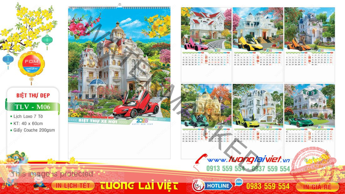Lịch treo tường 7 tờ Nhà và xe