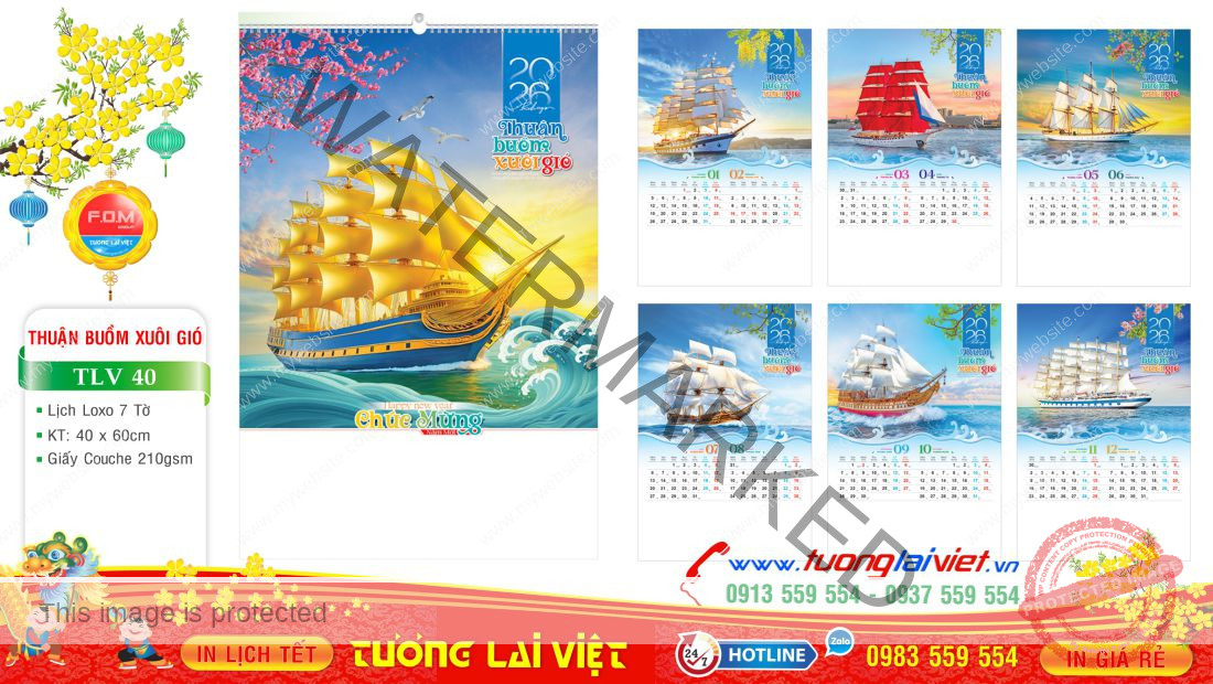 Lịch treo tường 7 tờ Thuận buồm xuôi gió