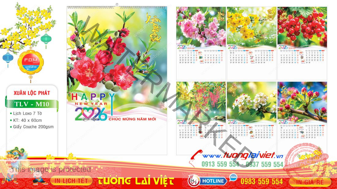 Lịch treo tường 7 tờ Xuân lộc phát